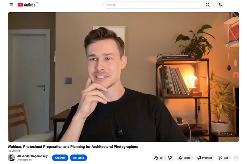 In the intro I am sharing my story. How it all started for me and how it´s going. I am sharing how I transitioned from photographing real estate to working full time with architects.