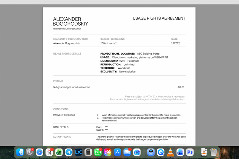 Even though I am based in Portugal, my business principles are built on internationally accepted standards. The knowledge I am sharing here comes not only from my personal experience, but also from my regular exchanges with architectural photographers around the world.